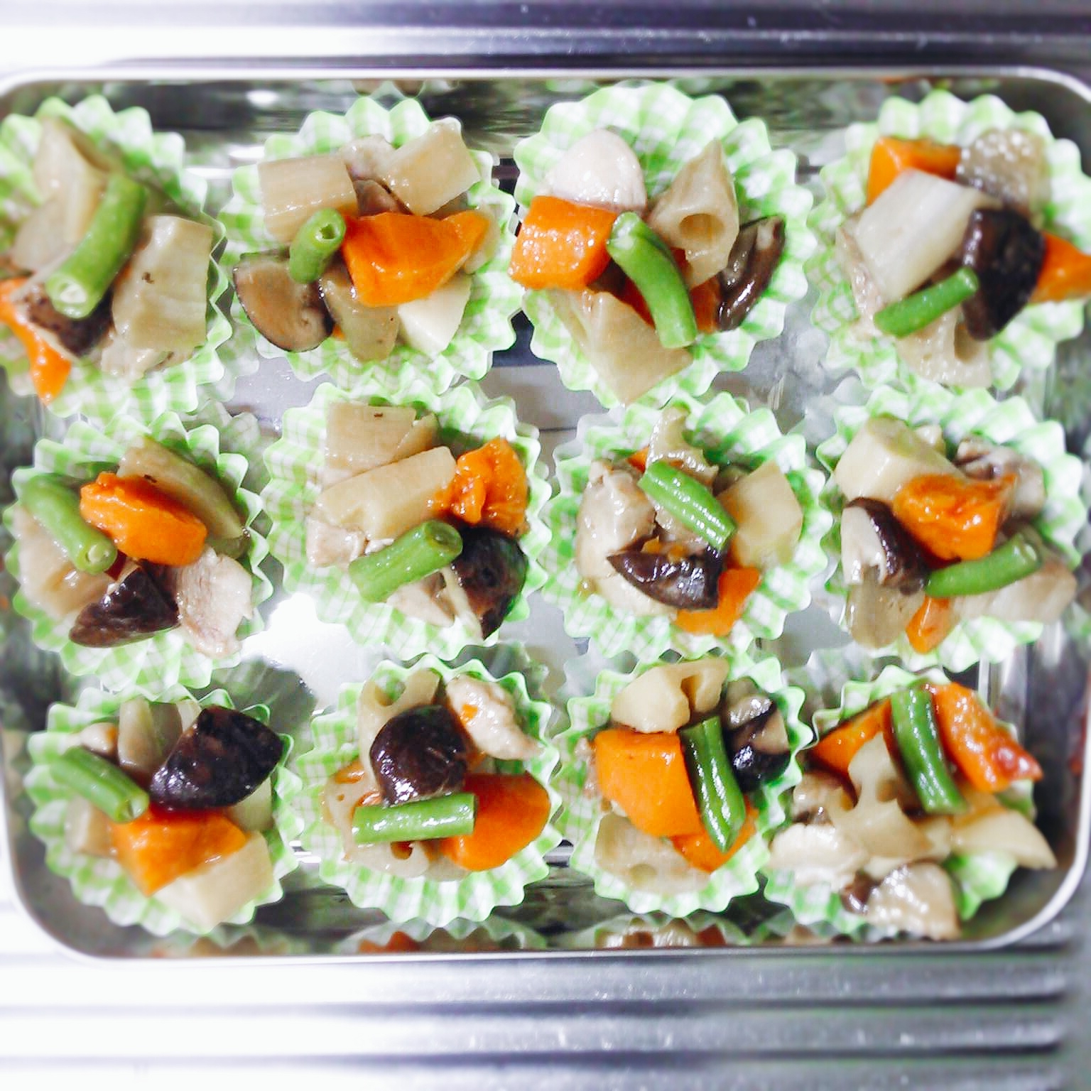 100均おかず ローソンバリューラインの和風ミックス野菜で作った筑前煮 100均食品で幸せオフィスランチ